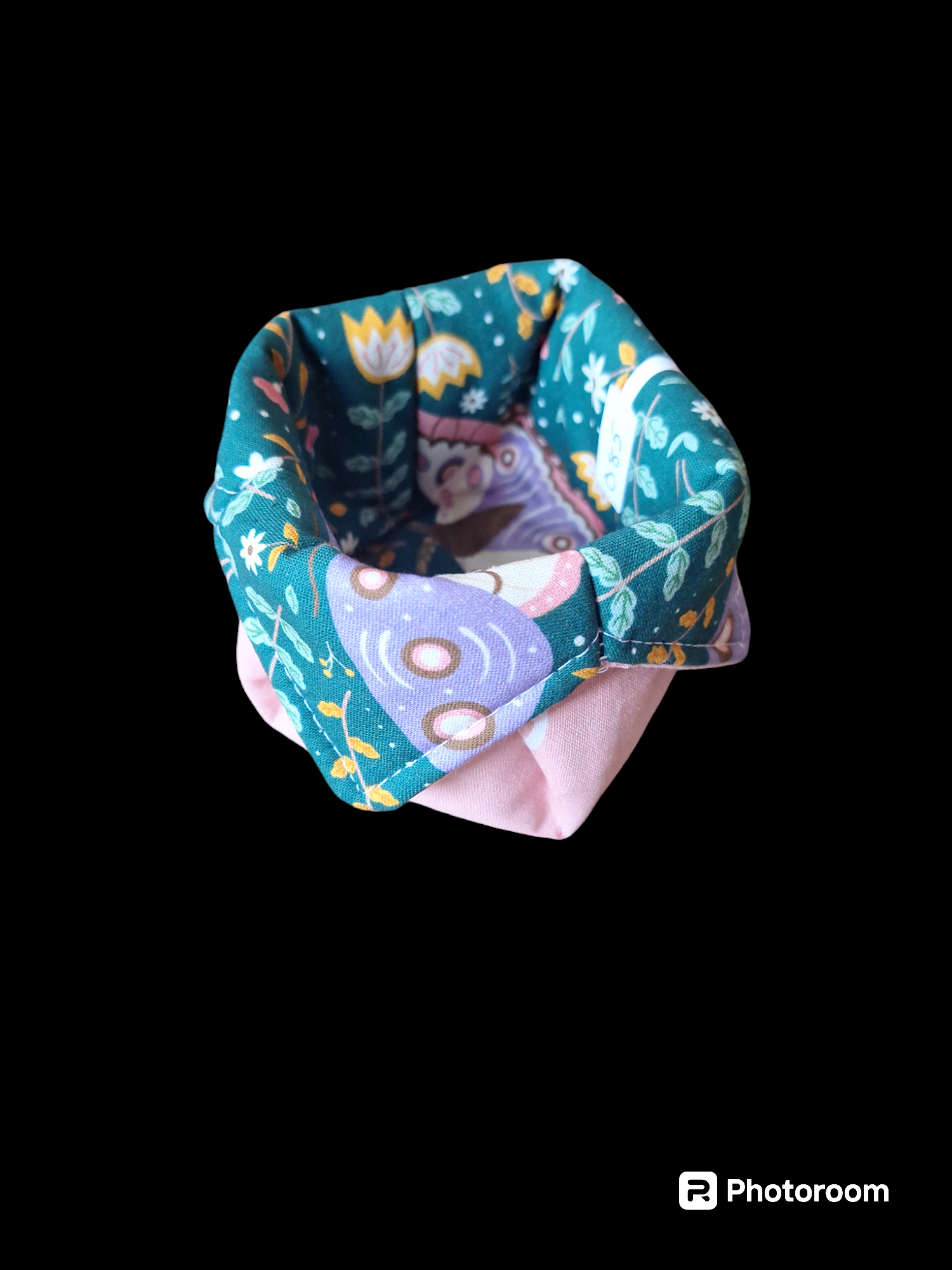 Small storage box. Pink and green floral pattern