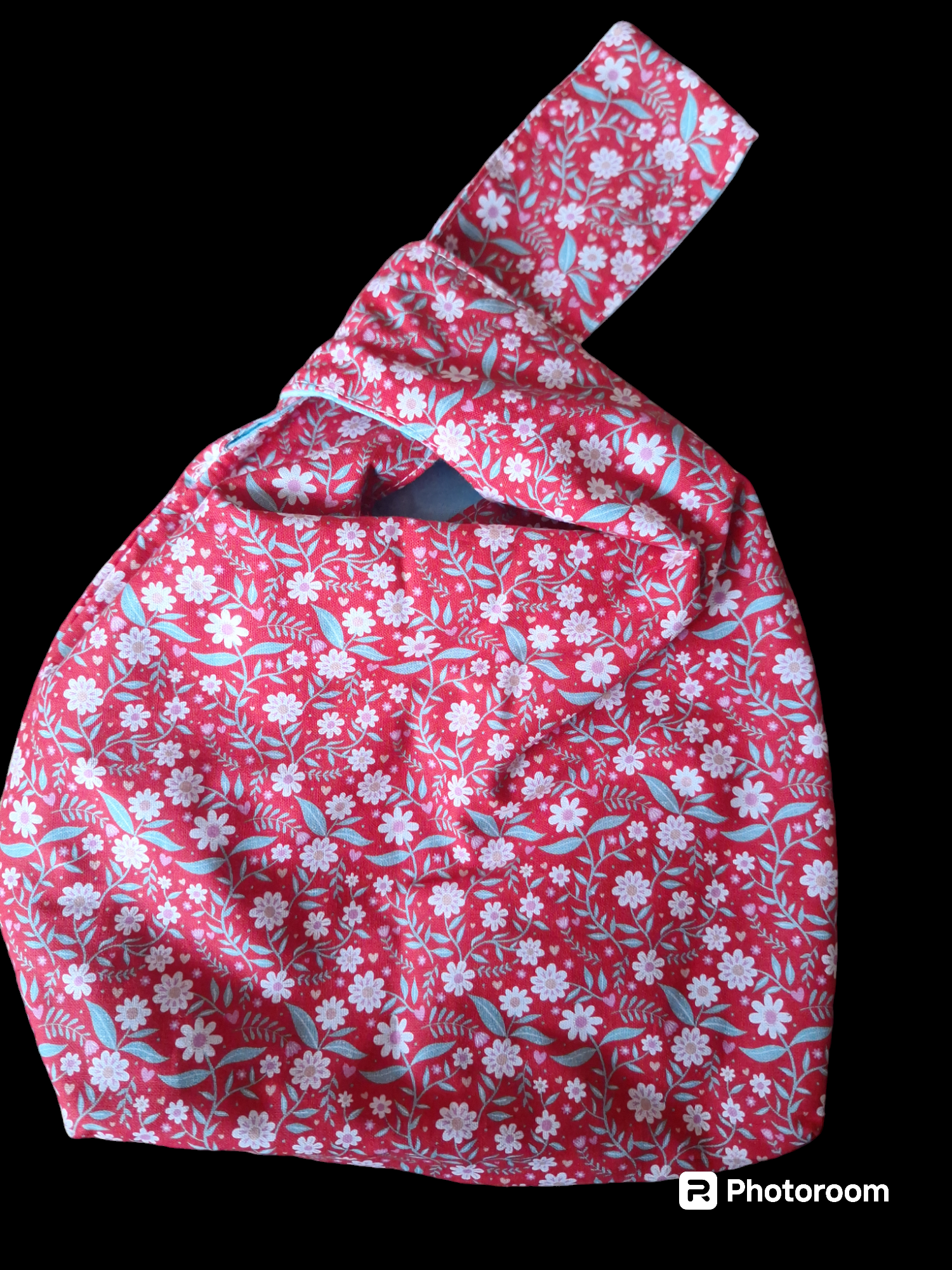 Small red floral bag with a cross over handle.