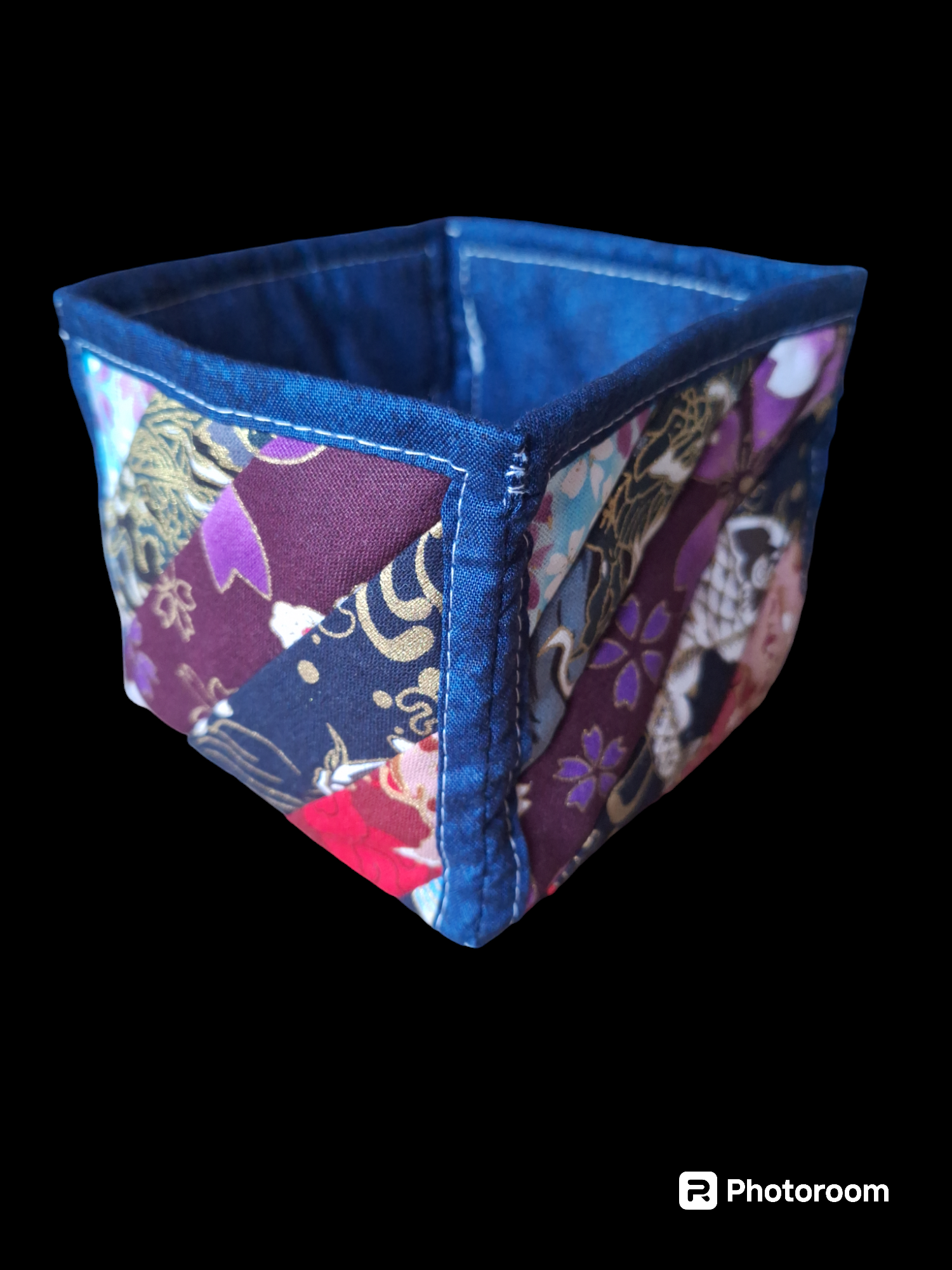 Storage box with Japanese patterned stripes and dark blue lining