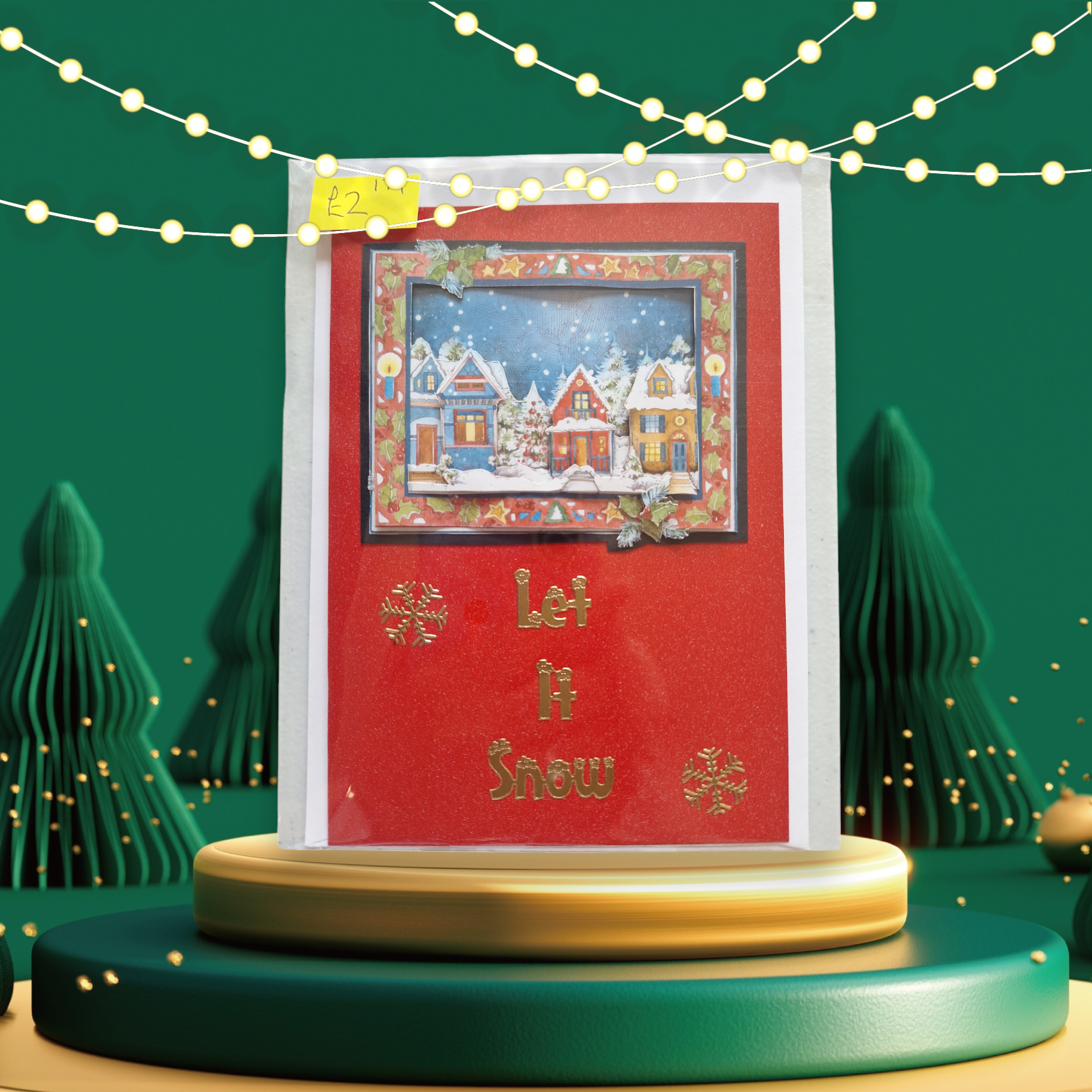 A5 red christmas card with snow-covered houses
